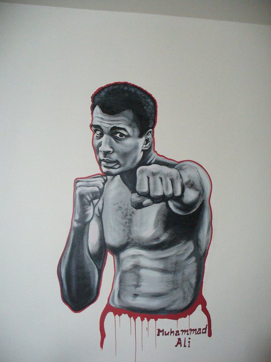 Podkrovná izba: Maľba na stenu: Muhammad Ali
